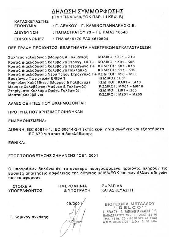 Όλα τα προϊόντα μας ηλεκτρολογικού υλικού φέρουν σήμανση CE